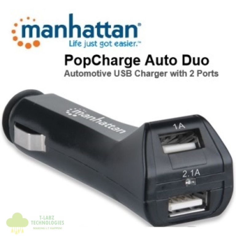 R142.31 incl VATManhattan PopCharge Auto Duo – Automotive USB Charger with 2 Ports , Converts a Cigarette Lighter Socket into a USB Power Source , Retail Box, Limited Lifetime Warranty